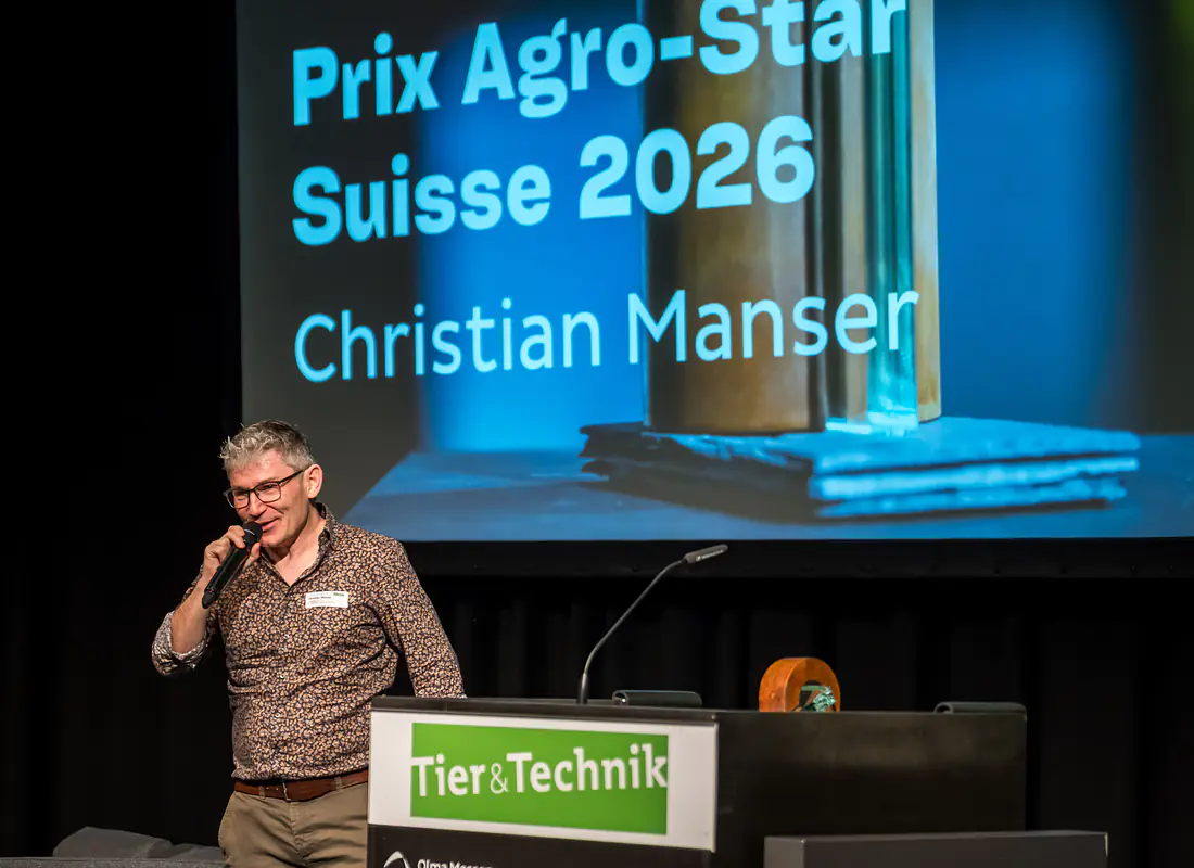 Christian Manser wurde am Donnerstag an der Eröffnungsfeier der Tier&Technik mit dem Agro-Star Suisse 2026 ausgezeichnet. Der Agronom und Gründer der Kuhsignale.ch AG erhält den Preis für sein langjähriges Engagement sowie für seine prägende Rolle in Beratung, Weiterbildung und Praxisentwicklung in der Rindviehhaltung.