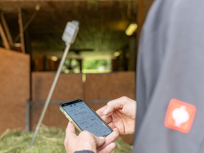 Die Heusonde Haystack ermöglicht eine präzise Überwachung des Heustocks durch gleichzeitige Messung von Temperatur und Feuchtigkeit. Dank Zirkularlüftung werden Messverfälschungen zuverlässig verhindert.