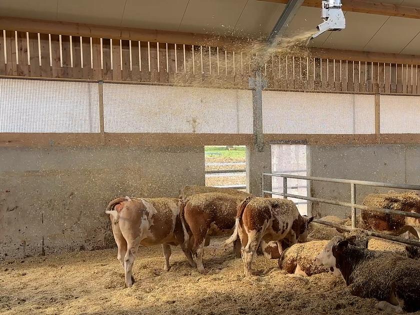 Mit der neuen Strohmatic Air ASD-SECTOR lassen sich Stallflächen in Sektoren unterteilen, die individuell und zeitgesteuert eingestreut werden. Das spart Stroh, verbessert die Hygiene und reduziert den Aufwand.