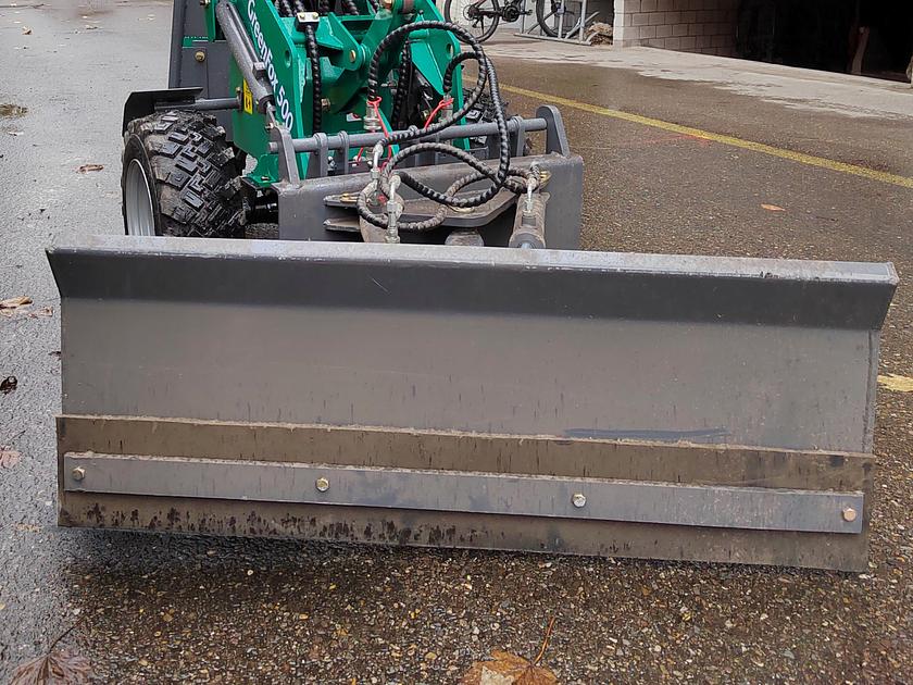 Das praktische Schiebeschild lässt sich hydraulisch nach links und rechts schwenken und ist ideal zum Anschieben von Futtergemisch sowie zum Abschieben von Mist oder Schnee. Die flexible Ausrichtung ermöglicht präzises Arbeiten auch in engen Bereichen und macht das Gerät zu einem vielseitigen Helfer im täglichen Betrieb.