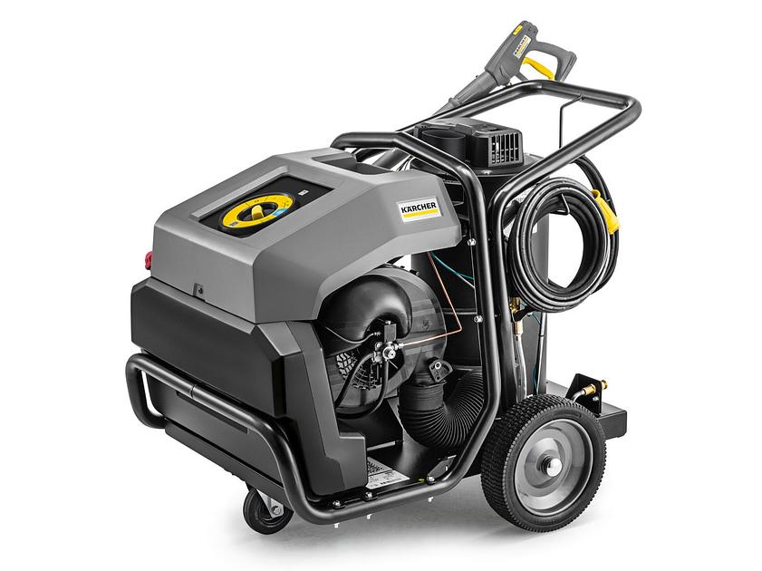 Einfach zu bedienender, zuverlässiger Heisswasser-Hochdruckreiniger mit Schwimmerkasten und Systempflegedosierung, hochwertiger Kurbelwellenpumpe sowie robustem Stahlrohrrahmen.