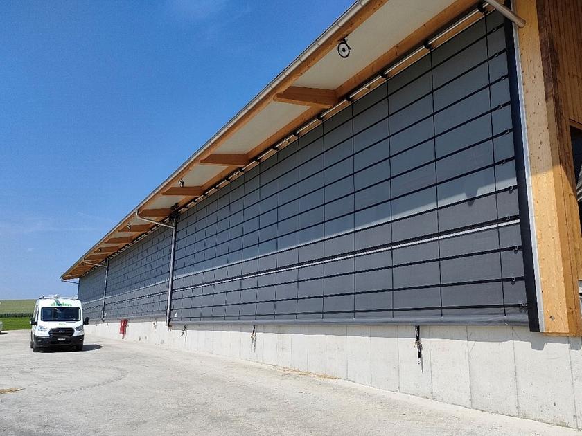 Die Lubratec Faltfront dient zum Verschliessen von Durchfahrten, die grösser als Tore sind. Sie öffnet von unten nach oben durch Zusammenraffen des Behanges. Durch aufgenähte Quergurte - geführt mit Rollen in seitlichen Aluschienen - ist auch bei Wind ein sicheres Öffnen und Schliessen gewährleistet. Der Platzbedarf für den Faltprozess muss bei der Mindestdurchfahrthöhe berücksichtigt werden. Seitlich wird nur der Platz der Schienen benötigt. Der Antrieb erfolgt mit einem Getriebemotor oder einer Handwinde mit Zugkette.
