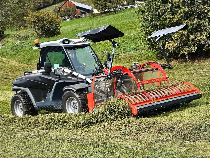 Der neue Bandschwader mountainmax überzeugt durch seine innovative geteilte Pick-Up mit gesteuerten Zinken, welche durch die gependelte Aufhängung für eine optimale Bodenanpassung sorgt und ist geeignet für Traktoren und Zweiachsmäher.